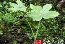 八角莲 M. Cheng)小檗科鬼臼属的多年生草本。植株高40~150厘米;根状茎直立,不分枝,无毛,淡绿色;叶互生,薄纸质,呈盾状,叶脉明显隆起,边缘有细齿;花深红色,5~8朵簇生于叶下方,下垂,…全部>>