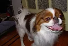 日本狆是极小型犬;被毛长而丰厚,不弯曲;毛色为白色底,带黑色或栗色斑块,斑块颜色越艳越好;斑块以在耳、身、面、尾根左右对称者为佳;头较大而圆,头骨平坦;吻短,鼻尖缩至两眼之间,几乎与眼同齐;眼大而凸出,…全部>>