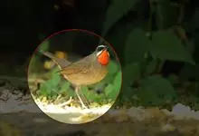 红尾歌鸲:体长13-15厘米。上体橄榄褐色。尾羽棕栗色,眼先和颊黄褐色,眼周淡黄褐色。下体颏、喉污灰白色,微沾皮黄色,胸部具橄榄色扇贝形纹,两胁橄榄灰白色,腹部和尾下覆羽与颏、喉同。尾部棕色。…全部>>