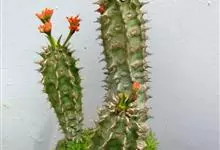 金刚纂,是大戟科大戟属的肉质灌木状小乔木。茎圆柱状,上部多分枝,叶片互生,少而稀疏,顶端钝圆,基部渐狭;花序二歧状腋生,苞叶膜质,总苞阔钟状,裂片半圆形,边缘具缘毛,雄花多枚;花期6-9月。…全部>>