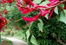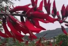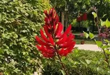 龙牙花是豆科刺桐属小乔木或灌木植物。株高可达3-5米;树干和分枝有散生皮刺;羽状复叶具3小叶,叶柄无毛,有时有下弯的刺,小叶菱状卵形,先端渐尖而钝或长渐尖,基部宽楔形,两面无毛,…全部>>