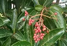 日本珊瑚树 Zabel ex Rumpl.)是忍冬科荚蒾属植物,常绿灌木或小乔木,高10米左右。 树冠倒卵形,枝干挺直,树皮灰褐色,具有圆形皮孔。叶对生,表面暗绿色,常年苍翠欲滴。 。圆锥花序通…全部>>