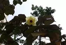 海滨木槿是锦葵科木槿属植物,落叶小乔木,株高3-5米,胸径20厘米,扁球形树冠,枝叶繁盛。厚纸质单叶互生,扁圆形、倒卵形或宽倒卵形,先端钝近平,具短突尖,基部圆形或浅心形,叶缘中上部具细圆齿,…全部>>