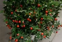珊瑚樱是茄科茄属植物。株高达2米;植株无毛;叶窄长圆形或披针形,长1-6厘米,基部窄楔形下延,全缘或波状,侧脉4-7对;叶柄长2-5毫米;花单生,稀双生或成短总状花序与叶对生或腋外生,…全部>>