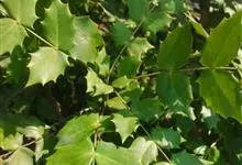 阔叶十大功劳 Carr. )是小檗科,十大功劳属常绿灌木或小乔木,高可达2米。叶长圆形,上面深绿色,叶脉显著,背面淡黄绿色,网脉隆起,小叶无柄,基部一对小叶倒卵状长圆形,总状花序簇生,…全部>>