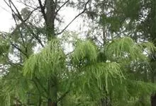 池杉 Croom)是杉科、落羽杉属植物,亦称池柏,沼落羽松。落叶乔木,高可达25米。主干挺直,树冠尖塔形。树干基部膨大,枝条向上形成狭窄的树冠,尖塔形,形状优美;叶钻形在枝上螺旋伸展;球果圆球形。…全部>>