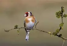 红额金翅雀:共有14个亚种。小型鸟类,体长12-14厘米。额、脸颊和颏朱红色,眼先和眼周黑色,在淡色的头部极为醒目。上体灰褐或乌褐色,尾上覆羽白色,两翅和尾黑色,翅上有黄色斑。下体喉、胸灰褐或乌褐色…全部>>