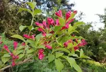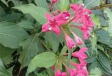 红王子锦带花是忍冬科锦带花属的落叶开张性灌木。株高1 -2米;嫩枝淡红色,老枝灰褐色;单叶对生,呈椭圆形,先端渐尖,叶缘有锯齿,红枝及叶脉具柔毛;花冠漏斗状钟形,花冠筒中部以下变细,聚伞花序,…全部>>