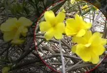 迎春花,木犀科素馨属的多年生木本植物,小枝细长直立或者呈拱形下垂;叶片呈卵形或椭圆形;花单生于叶腋处,苞片呈披针形或椭圆形,花冠为金黄色,花瓣通常为倒卵形或椭圆形;花期在6月。…全部>>