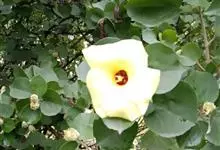 海滨木槿是锦葵科木槿属植物,落叶小乔木,株高3-5米,胸径20厘米,扁球形树冠,枝叶繁盛。厚纸质单叶互生,扁圆形、倒卵形或宽倒卵形,先端钝近平,具短突尖,基部圆形或浅心形,叶缘中上部具细圆齿,…全部>>