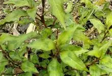 酸模叶蓼 Delarbre),是蓼科蓼属的一年生草本。株高可达90厘米;茎直立,分枝,节部膨大;叶披针形或宽披针形,先端渐尖或尖,基部楔形,上面常具黑褐色新月形斑点,…全部>>