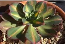 红缘莲花掌属蔷薇目、景天科植物,原产大西洋的加那利群岛。质厚,蓝绿色,被白霜,叶缘红褐色。聚伞花序,花浅黄色,有时带红晕。叶形叶色较美,有一定的观赏价值,多盆栽用于点缀室内;可放置于电视、电脑旁,…全部>>