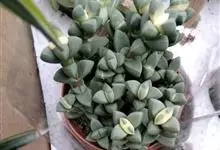 鹿角海棠是番杏科鹿角海棠属多浆肉质灌木。老枝呈灰褐色,木质化,嫩枝为淡绿色,分支处有节间;叶交互对生,呈半月形,三棱状,为粉绿色至灰绿色,叶端狭窄,先端尖锐;叶尖微粉红色,叶背有龙骨状突起,…全部>>