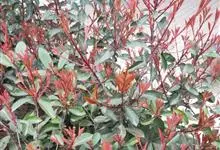 红叶石楠 是蔷薇科,石楠属杂交种,为常绿小乔木或灌木,乔木高可达5米、灌木高可达2米。叶片革质,长圆形至倒卵状、披针形,叶端渐尖,叶基楔形,叶缘有带腺的锯齿,花多而密,复伞房花序,花白色,梨果黄红色,…全部>>