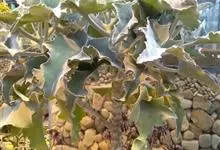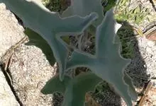 仙女之舞是景天科、伽蓝菜属植物。常绿肉质灌木,株高可达2-3米。幼株茎上有毛。叶有柄;单叶对生,阔卵状三角形,肉质;新叶开展,老叶正面凹、背面圆凸,缘具稀锯齿,橄榄绿色至灰绿色,被稠密的灰白色毛。…全部>>