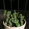 星乙女景天科,青锁龙属多年生肉质草本,植株呈亚灌木状,具细小的分枝,茎肉质,以后稍木质化,肉质叶灰绿至浅绿色,交互对生,卵圆状三角形,无叶柄, 基部连在一起,幼叶上下叠生,成叶上下有少许间隔。…全部>>