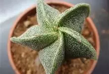 星兜,其拉丁学名为Astrophytum asterias。原产美国南部、墨西哥北部、东北和中部地区。植株呈扁圆球形,直径5~8cm,球体由6~10条浅沟而分成6~10个扁圆棱。无刺,…全部>>