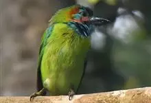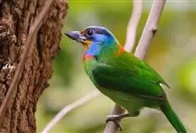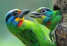 绿拟啄木鸟为鴷形目,须科,拟啄木属的一种。形较大拟啄木鸟略小,体长约260mm。头、颈及胸浅褐而具淡黄白色条纹;喉几为淡黄白色;身体余部草绿色。虹膜棕褐色,眼周裸露部黄色;嘴峰角黄色;跗跖和趾角黄…全部>>