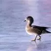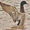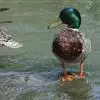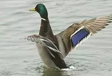 绿头鸭属游禽,大型鸭类。体长47-62厘米,体重大约1千克,外形大小和家鸭相似。雄鸟嘴黄绿色,脚橙黄色,头和颈辉绿色,颈部有一明显的白色领环。上体黑褐色,腰和尾上覆羽黑色,两对中央尾羽亦为黑色,且向…全部>>