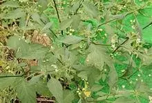 龙葵,茄科茄属一年生草本植物,茎近无毛或被微柔毛,叶互生,卵形或卵状椭圆形,叶常无毛;花小且下垂,花冠白色或淡紫色;浆果为球形,熟时黑紫色,有光泽;种子多数,卵形芝麻状,黄色;花期6-9月,…全部>>