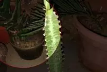 霸王鞭,是大戟科大戟属的多年生肉质灌木,全株含白色乳汁;茎直立,茎基部圆柱形,上部4~5纵棱,边缘波状,外面深绿色;叶互生,上部叶密集,近于簇生,具短柄,其基部有利刺1对;叶片披针形,先端圆,…全部>>