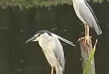 夜鹭是中型涉禽,体长46-60厘米。体较粗胖,颈较短;嘴尖细,微向下曲,黑色;胫裸出部分较少,脚和趾黄色;头顶至背黑绿色而具金属光泽;上体余部灰色;下体白色;枕部披有2-3枚长带状白色饰羽,下垂至背上,…全部>>