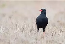 红嘴山鸦,是脊索动物门鸟纲雀形目鸦科鸟类。红嘴山鸦的成鸟通体羽毛纯黑色具有蓝色金属光泽,翼和尾泛有蓝绿色金属光泽;虹膜暗褐色,喙较为尖细,并且呈镰状下弯,喙和脚朱红色。…全部>>