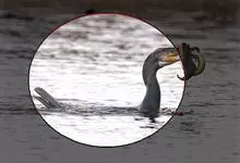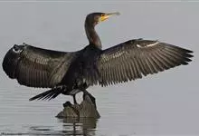 普通鸬鹚是属于鲣鸟目鸬鹚科鸬鹚属鸟类,又名水老鸦、鱼鹰、乌鬼、黑鱼郎等。体长720—900毫米,雌雄同型。通体黑色,有绿褐色金属光泽;喙厚重,喙基和喉囊橙黄色,脸颊及喉白色;夏羽颈及头饰具白色丝状羽,…全部>>