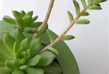 乙女心是景天科景天属的多肉植物,原产墨西哥。多年生亚灌木,茎叶肉质,株高5-30厘米。叶片簇生于茎顶,圆柱状,淡绿色或淡灰蓝色,叶先端具红色,叶长3~4厘米。花小,黄色。春秋为生长季,…全部>>