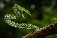 绿瘦蛇是游蛇科,瘦蛇属轻毒性后沟牙毒蛇。体型极细而长,长可达1.5米。头较窄长,与颈区分极明显;吻端略圆而平扁,超出下领;眼大,瞳孔呈一横缝;颊区呈一凹槽;躯干瘦长侧扁,尾甚长而细。背面鲜绿色,…全部>>
