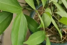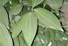 天竺桂,是樟科樟属乔木植物,枝条细弱呈圆柱形,无毛;叶近对生或在枝条上部互生,呈卵圆状长圆形或披针形,上面绿色,下面灰绿色;花序梗与序轴均无毛,花被片呈卵形;果长圆形,…全部>>