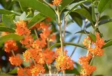朱砂桂:为丹桂品种群,乔木,高5米,灌幅3米,树冠圆球形,紧密度中等,树皮浅灰色,比较平滑,皮孔稀疏,形状。大小不一。叶片披针形,长10-15厘米,宽3.5-4.0厘米,叶色暗绿,全缘或顶端有锯齿,…全部>>