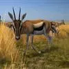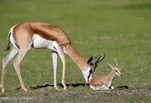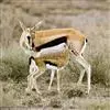阿拉伯沙瞪羚:是偶蹄目、牛科、瞪羚属的食草动物。头尾长97厘米,身高约55-60厘米。雄性体重约为22千克,雌性性体重为18千克。雌雄都有犄角,雄性长达27厘米,雌性15厘米。体型较小。腿细长,…全部>>