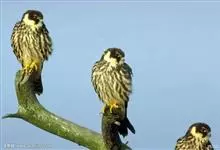 燕隼:是隼科、隼属的鸟类。体长约36厘米,体重140-340克。体形比猎隼、游隼等都小,为小型猛禽,雌鸟比雄鸟稍大;头部和颈后主要为灰黑色,颈后有一乳白色领斑;上体其余部分羽毛灰色,尾部稍淡,…全部>>