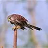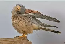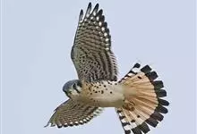 红隼:是隼科、隼属的小型猛禽之一。体重173-335克,体长305-360毫米。翅狭长而尖,尾亦较长,外形和共同爪隼非常相似。雄鸟头蓝灰色,背和翅上覆羽砖红色,具三角形黑斑;腰、尾上覆羽和尾羽蓝灰色,…全部>>