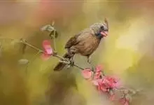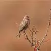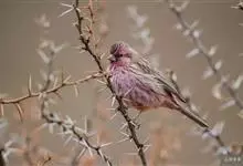 红眉朱雀:体长15厘米,是一种中等体型的朱雀。上体褐色斑驳,眉纹、脸颊、胸及腰淡紫粉,臀近白。雌鸟无粉色,但具明显的皮黄色眉纹。雄雌两性均甚似体型较小的曙红朱雀,但嘴较粗厚且尾的比例较长。…全部>>