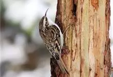 旋木雀是旋木雀科旋木雀属的一种动物。小型鸟类,体长12~15厘米,平均重10克。嘴长而下曲,上体棕褐色具白色纵纹,腰和尾上覆羽红棕色,尾黑褐色,外翈羽缘淡棕色,翅黑褐色,翅上覆羽羽端棕白色,…全部>>