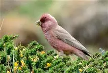 红腰朱雀:体长12-14厘米,小型鸟类。雄鸟前额和眉纹玫瑰粉红色,头顶和一宽的贯眼带深红褐色,背红棕褐色具暗褐色纵纹,腰玫瑰粉红色,两翅和尾暗褐色,羽缘色淡颊、头侧、颏、喉和其余下体玫瑰粉红色。雌鸟…全部>>