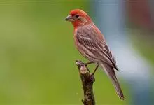 普通朱雀是雀形目雀科朱雀属鸟类,又名红朱雀、马料、青麻料。雄鸟上体红色,下体淡红色;头部、喉部、胸部及腰部亮红色;背部褐色染红色;两翼及尾黑褐色,羽缘染红色。雌鸟上体橄榄褐色,下体近白色,…全部>>