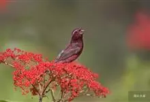 普通朱雀是雀形目雀科朱雀属鸟类,又名红朱雀、马料、青麻料。雄鸟上体红色,下体淡红色;头部、喉部、胸部及腰部亮红色;背部褐色染红色;两翼及尾黑褐色,羽缘染红色。雌鸟上体橄榄褐色,下体近白色,…全部>>