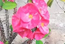 虎刺梅:别称铁海棠,是蔓生灌木植物。茎多分枝,长60-100厘米,直径5-10毫米,具纵棱,密生硬而尖的锥状刺,刺长1-1.5厘米,直径0.5-1.0 毫米,常呈3-5列排列于棱脊上,呈旋转。叶互生…全部>>