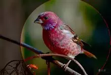 酒红朱雀小型鸟类,体长13~15厘米。雄鸟通体深红色,头部深朱红或棕红色,下背和腰玫瑰红色,眉纹粉红色而具丝绢光泽。两翅和尾黑褐或灰褐色、具暗红色狭缘,内侧两枚三级飞羽具淡粉红色先端。…全部>>