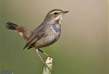 蓝点颏亦称“蓝喉歌鸲”,通称蓝靛颏儿。身体大小和麻雀相似,体长12-13厘米,体重17-18克。头部、上体主要为土褐色。眉纹白色。尾羽黑褐色,基部栗红色。颏部、喉部辉蓝色,下面有黑色横纹。下体白色。…全部>>