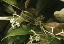 夜香树是茄科、夜香树属直立或近攀援状灌木。枝条细长而下垂。叶有短柄,叶片矩圆状卵形或矩圆状披针形,全缘,顶端渐尖,基部近圆形或宽楔形,两面秃净而发亮,有6-7对侧脉。伞房式聚伞花序,腋生或顶生,…全部>>