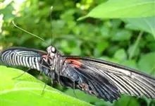 曙凤蝶是凤蝶科、曙凤蝶属蝴蝶。体背黑色,头、颈、胸侧及腹侧具红色鳞毛。雌、雄异型。雄蝶翅黑绒色,后翅的臀缘褶很大,反卷且具灰白色体毛的性标。雌蝶前翅大部及后翅色淡,…全部>>