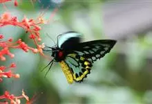 金裳凤蝶是凤蝶科、裳凤蝶属的动物。金裳凤蝶身体呈黑色,头、颈和胸侧有红毛,腹部有黑黄两色相间条纹,雄蝶前翅黑色,具黑天鹅绒光泽,各脉两侧灰白色,后翅金黄色,各室外缘有等腰三角形黑斑1枚,斑内侧有晕,…全部>>