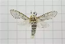 多斑豹蠹蛾,学名是Zeuzera multistrigata,木蠹蛾科豹蠹蛾属的一个物种。多斑豹蠹蛾的成虫灰白色,体长29毫米,翅展55~61毫米。头、胸部都密被灰色短毛。全部>>