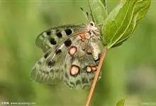 阿波罗绢蝶:翅展约7-8.4厘米。前翅较圆,白垩色,翅表有许多黑点、灰白斑及无鳞透明区,这些斑点的形状、密度及其强度常随产地的不同而有所变化,但后翅通常总有显著的鲜红色斑点。触角主干灰白色,…全部>>
