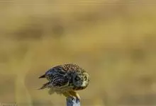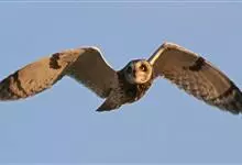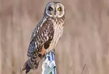 短耳鸮又名小耳木兔、田猫王、夜猫子等,是鸮形目鸱鸮科耳鸮属中小型猛禽动物。成鸟面盘显著,眼周黑色;眼先及内侧眉纹灰白色,面盘余部棕黄色杂以黑色细羽干纹;耳簇羽短小而几乎不外露,…全部>>