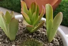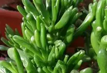 筒叶花月,是景天科青锁龙属的多年生草本植物。植株多分株,灌木状,茎较粗壮,圆柱形,表皮灰褐色;叶片肉质,互生,呈圆筒状,簇生于茎或分枝顶端,叶端呈斜截形,截面为椭圆形;花呈星状,淡白色;花期秋季。…全部>>